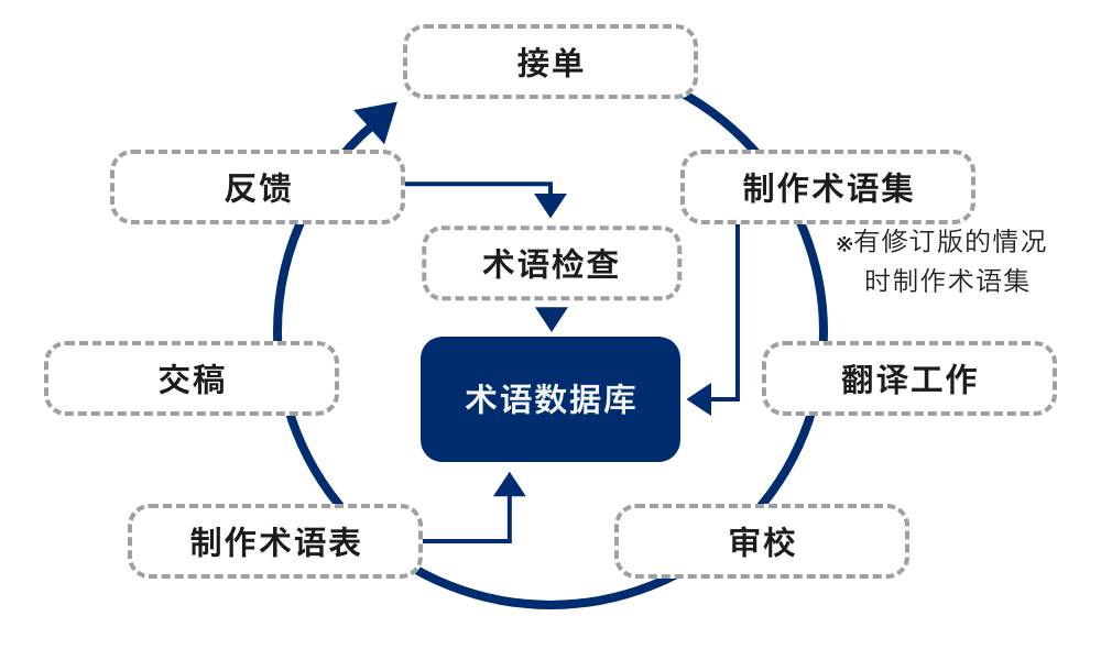 针对每位客户及每个领域,将反复使用的单词及行业特有的说法、喜欢的译文储存在“术语集(数据库)”中。甚至对客户提出的反馈也毫无遗漏地进行管理及更新。以此尽可能杜绝术语的不统一,进一步提高翻译精度。