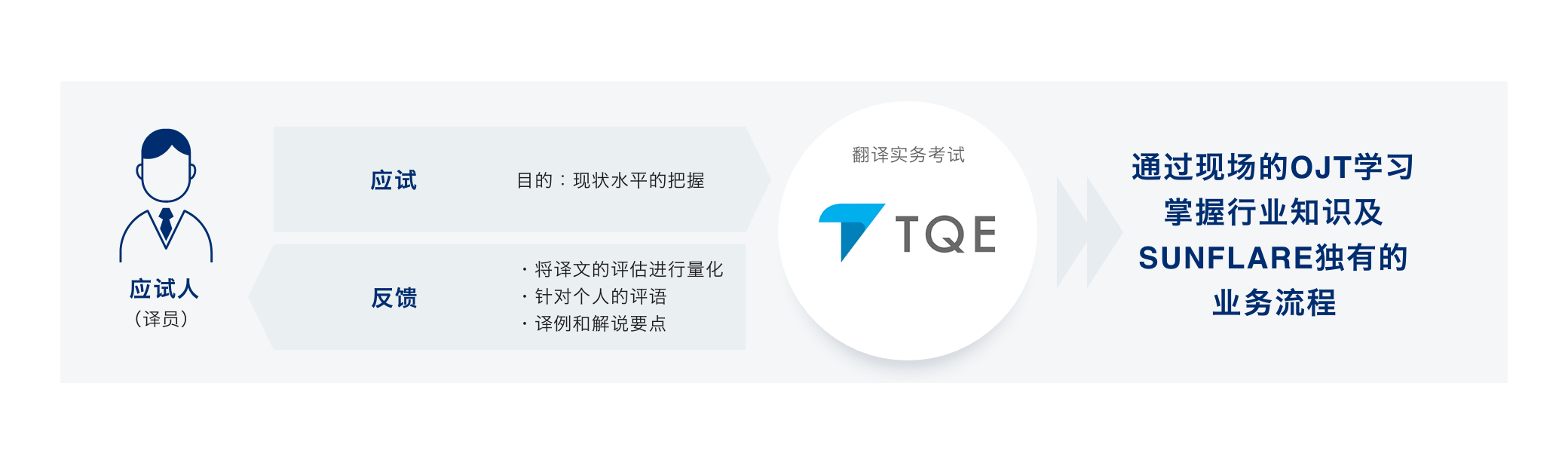 学员根据生活方式可选择面授或函授听课。讲座中所使用的教材是在SunFlare的翻译实务中有效应用的实践性内容,可获得范围广泛的行业及业态的知识。如果通过翻译实务考试『TQE』的话,可以注册为本公司的译员,迄今为止已经培养出了3,000多名译员。