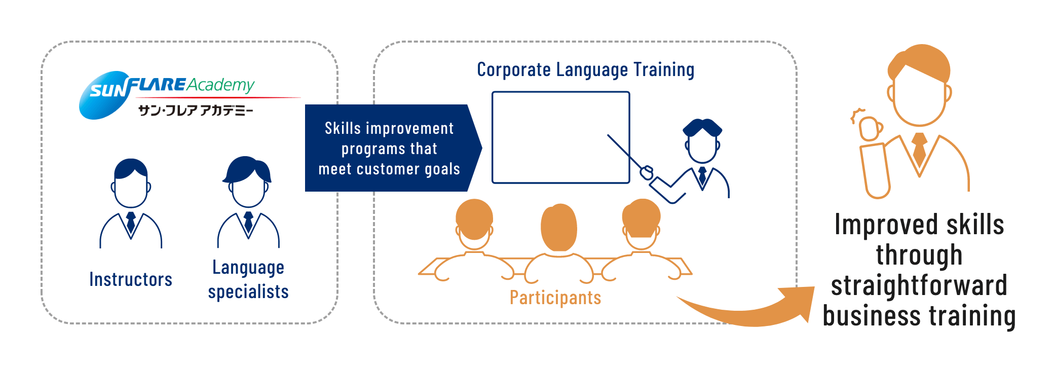 We plan and deliver language training courses that are tailored to the client's business practices. SunFlare offers work-related language training by using actual business documents as the teaching materials. We also offer communication-based training programs on topics such as the following: technical writing, which is widely used in the creation of business documents; English reading comprehension, which is necessary to ensure a smooth business workflow; and e-mail writing, which allows for better communication with international staff.