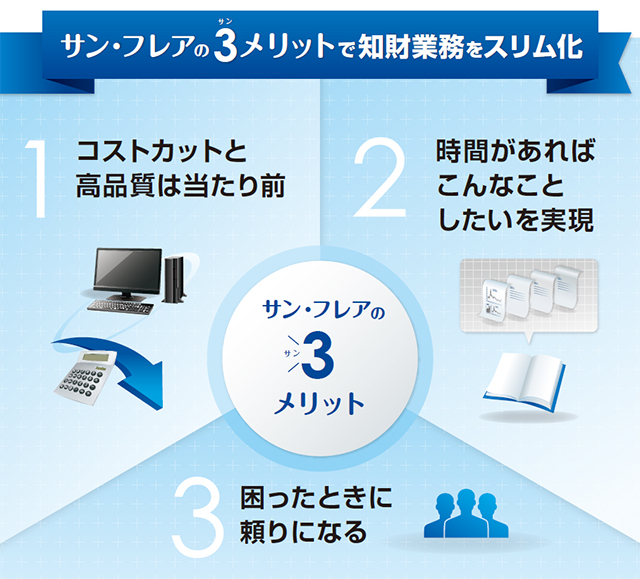今回は「サン・フレアの3メリットで知財業務をスリム化」をブースにてご紹介いたします。