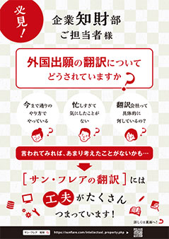 株式会社サン・フレア お客様サービス本部Tel:03-3355-1168 Mail: sf-patent@sunflare.co.jp