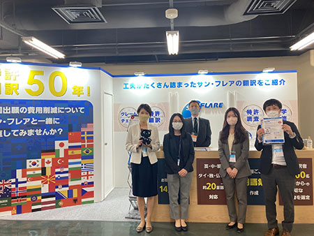 本展示会は、工夫がたくさんつまった【サン・フレアの翻訳】をテーマに、外国出願の「翻訳」についてご紹介しました。各国の国旗を用いた色鮮やかなブースに、多くのお客様が足を運んでくださり、大盛況のうちに終えることができました。感染対策に努めながらもたくさんのお客様と直接お話させて頂き、大変貴重な機会となりました。